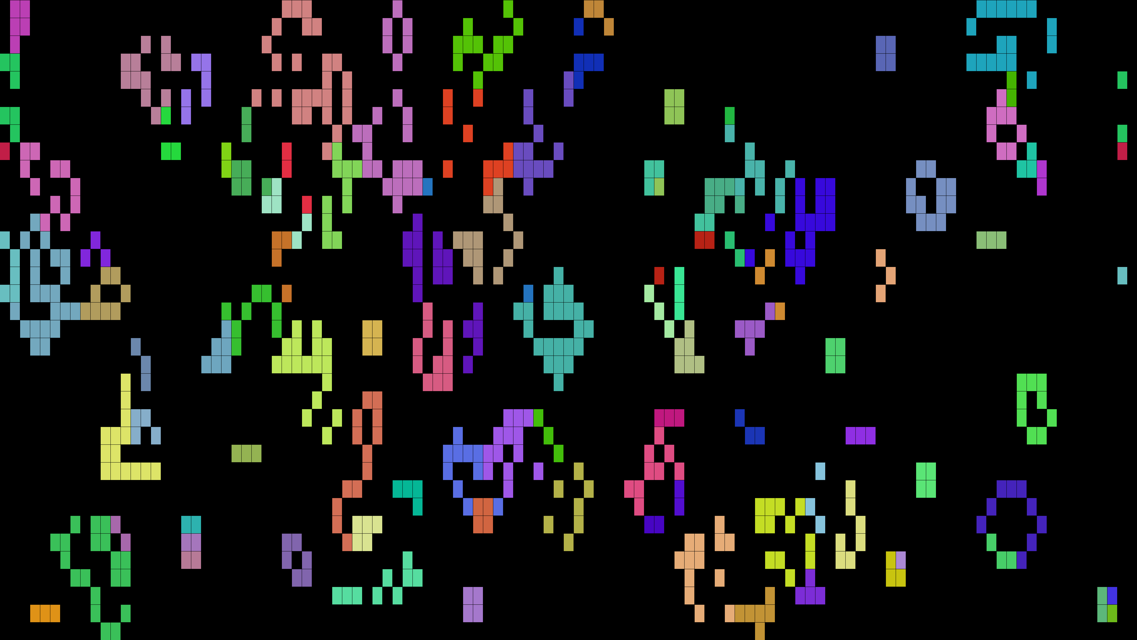 An implementation of John Conway's famous "Game of Life" with 3 custom coloring rules. A few basic rules govern which cells will live in the next generation depending on the cells current state and the number of its live neighbors.[CR][CR]Screenshots don't do this much justice as the motion of the system bordering between stability and chaos is what looks interesting.[CR][CR]Features:[CR] - 3 custom coloring rules are implemented each yielding interesting results.[CR] - Colony coloring color cells depending on the color of its 'parent' cells.[CR] - Lifetime coloring colors a cell depending on how long its been alive.[CR] - Neighbor coloring a cell depending on the configuration of its neighbors.[CR] - Many parameters are configurable in the settings.