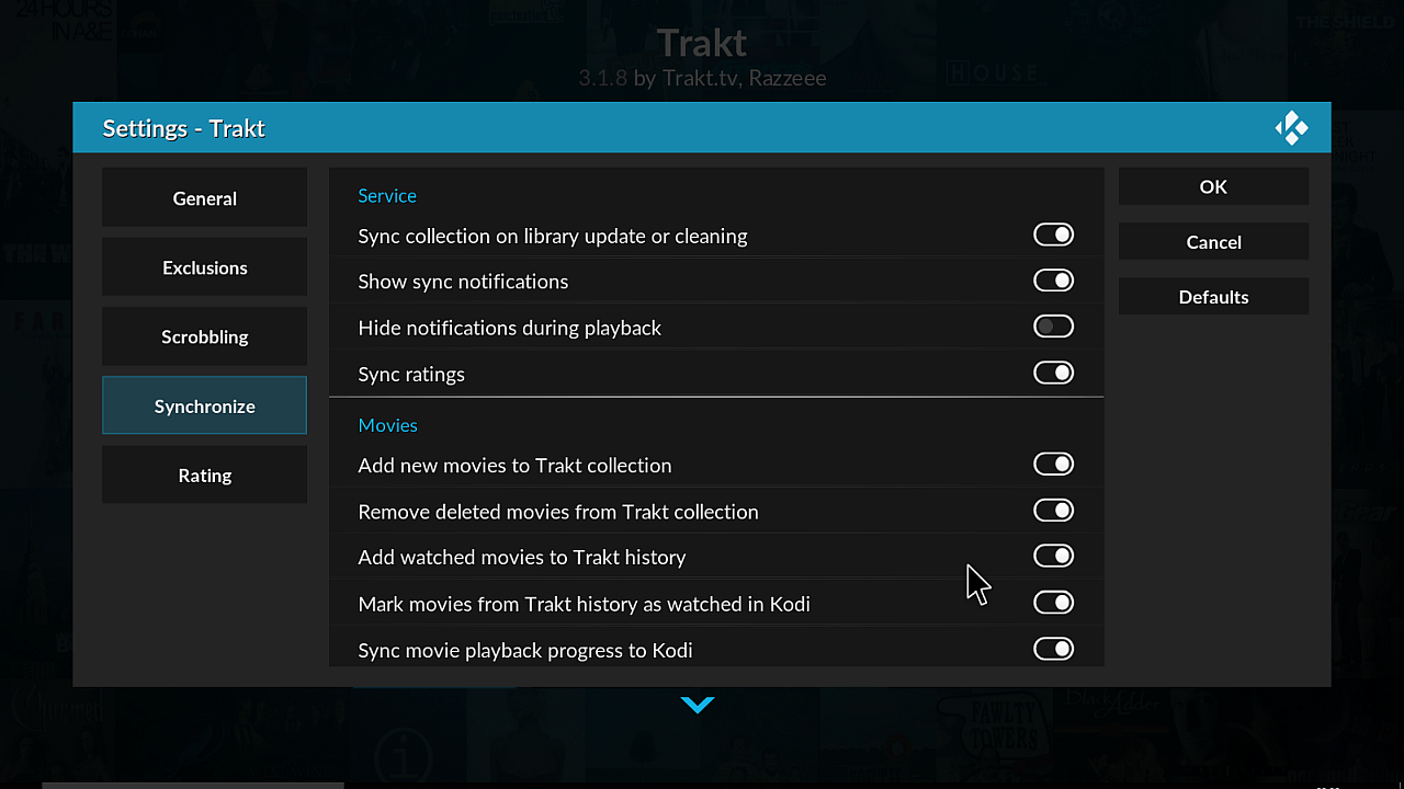 - Sync your TV episode and movie collections to Trakt (triggered after a library update)