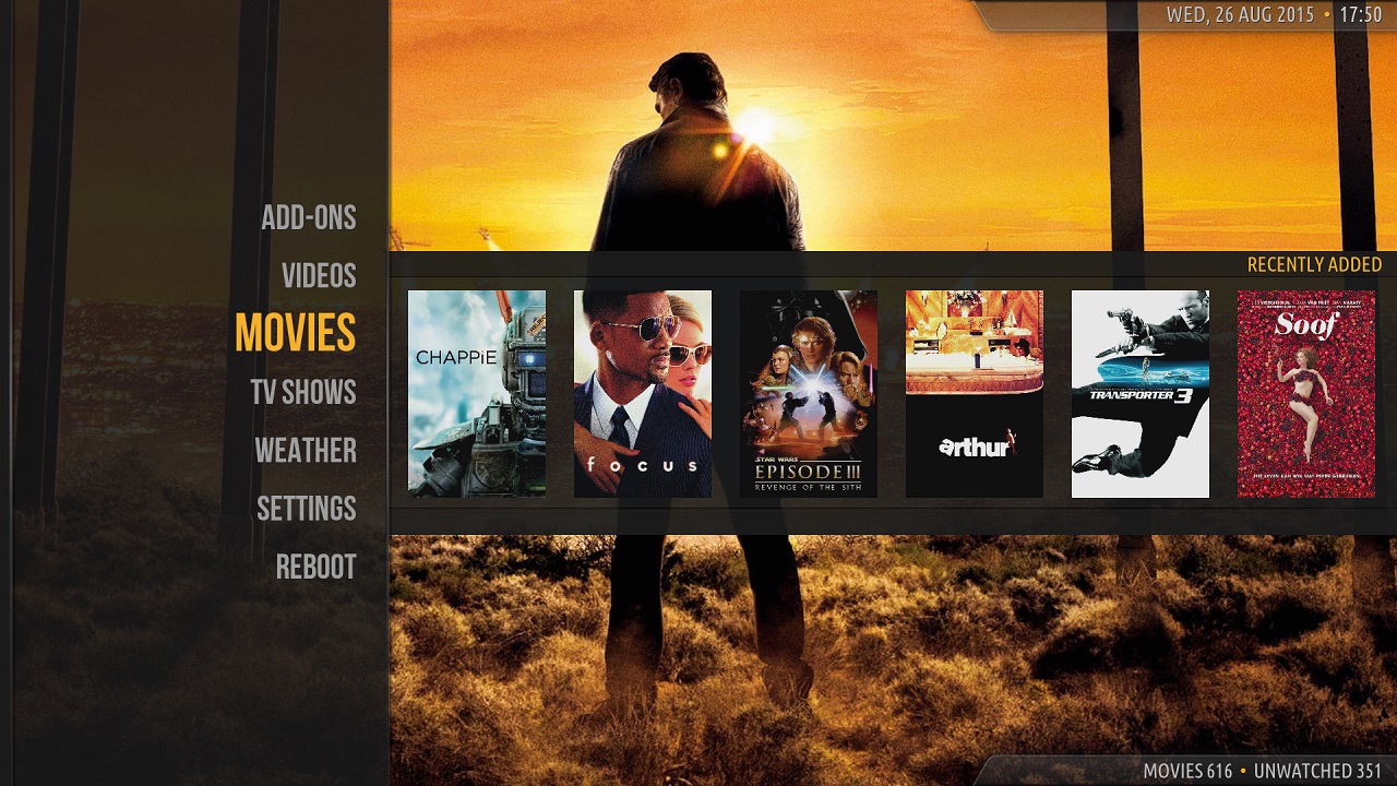 No bloatware, just your media with an easy to navigate interface. Uses some textures from Mediastream and Aeon skins.