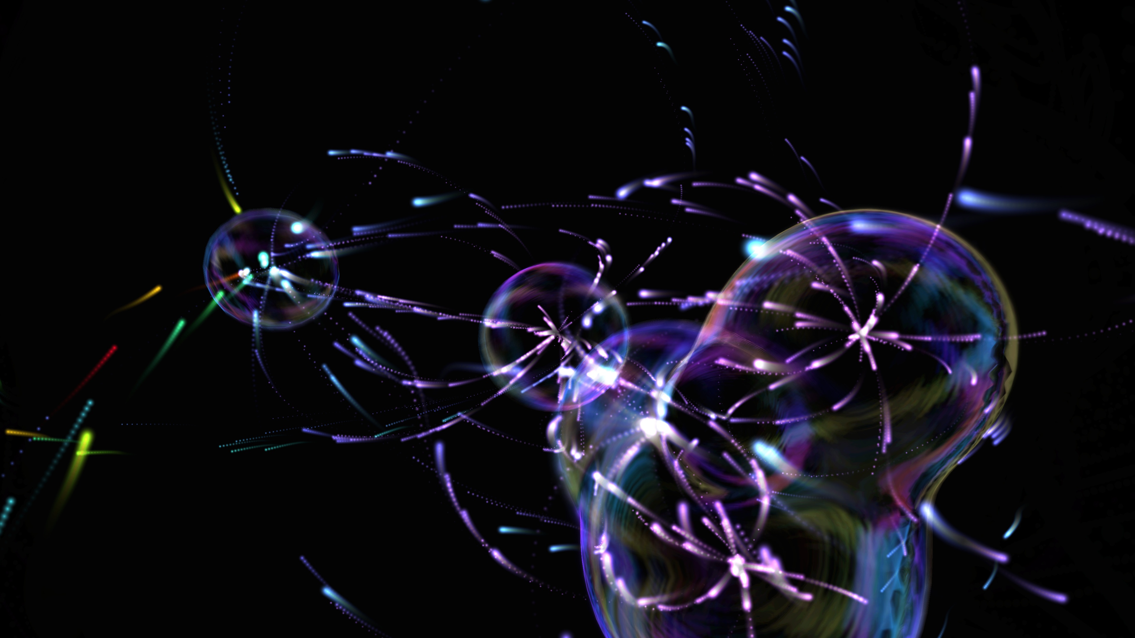 Throw together some attraction/repulsion particle effects and some smooth implicit surfaces and this is what you get.