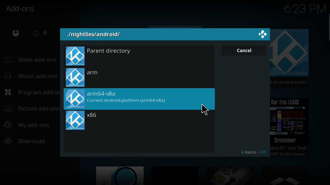 Download and Install Kodi android packages; select from Nightlies, Releases, Snapshots and Test-builds.