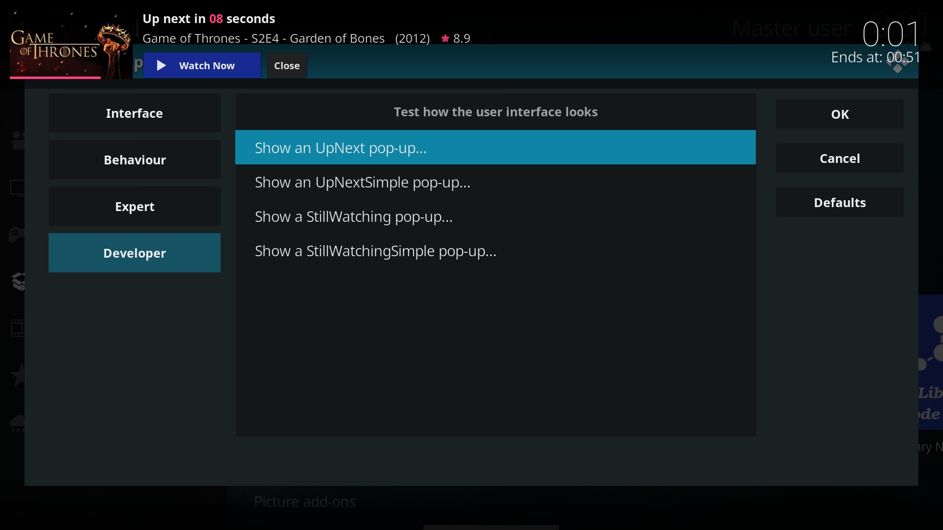 A service add-on that shows a Netflix-style notification for watching the next episode. After a few automatic iterations it asks the user if he is still there watching.