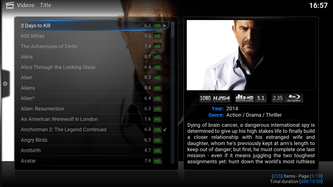 Confluence is a combination of concepts from many popular skins, and attempts to embrace and integrate their good ideas into a skin that should be easy for first time Kodi users to understand and use.