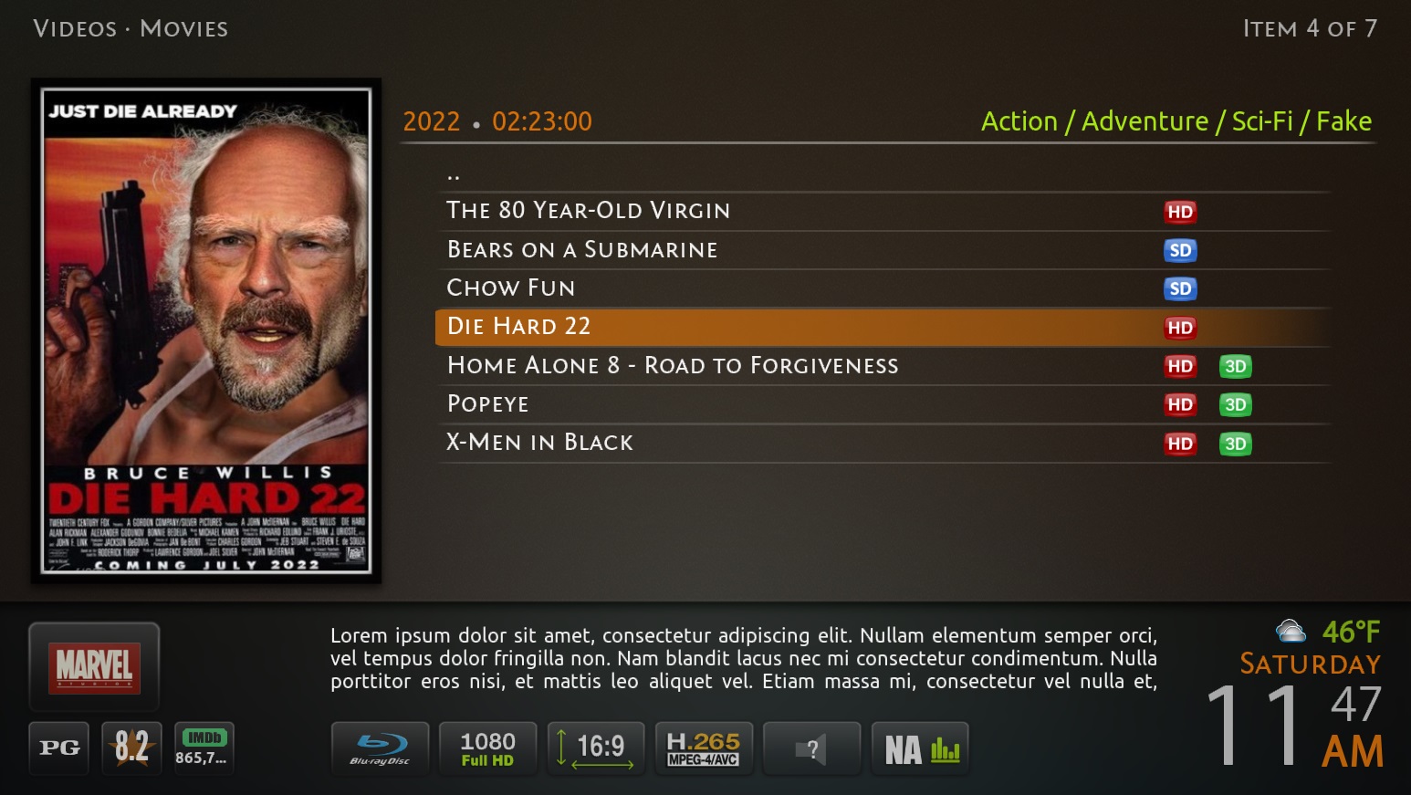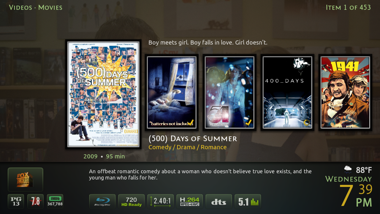Metropolis is designed to show as much media info as possible with easy to read text and icons. All while trying to keep the skin smooth and simple to use for all family members with multiple themes and customizable menus and views. Credit to Hitcher for Alaska Revisited which was used as a base for Metropolis.