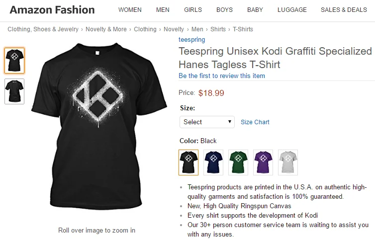 In fact, if you happen to live in the US, we understand that it is now possible to buy an official Kodi shirt not just on our Teespring store, but directly from Amazon.com. If and when this gets rolled out internationally, we'll keep you updated.