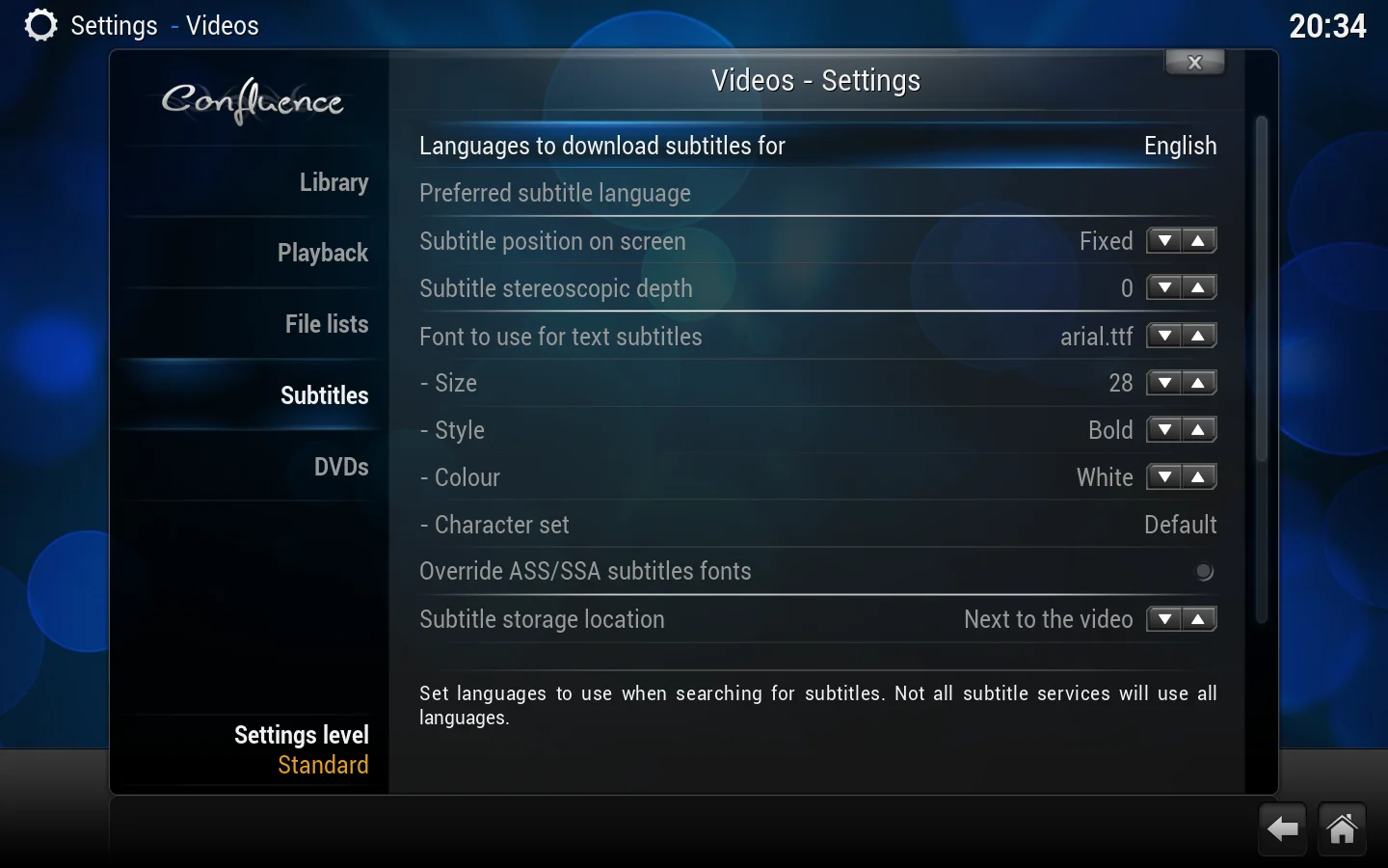 First, settings have been broken down into levels starting at beginner and going all the way up the scale to expert level. The typical XBMC user should never need to go very far past the Standard settings. If installing XBMC for friends or family, it is highly encouraged that you move the settings down to Beginner level. And if a setting has disappeared that you typically expect to see, definitely browse through the settings levels, as it likely has been hidden on a more advanced level.